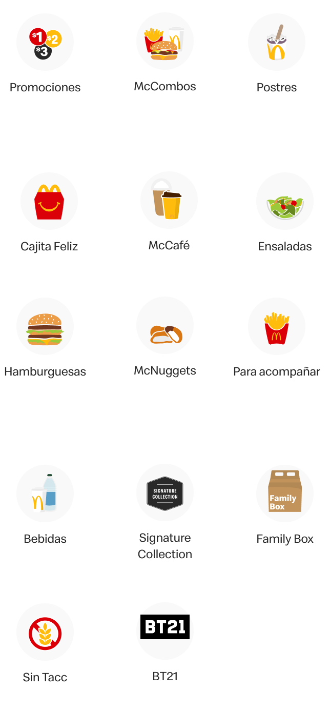 La estandarización de las categorías busca asegurar que los usuarios en todos los países donde opera Arcos Dorados puedan encontrar las mismas agrupaciones de productos, con una presentación consistente en nombres, íconos y jerarquías, ajustadas a las particularidades locales según sea necesario.