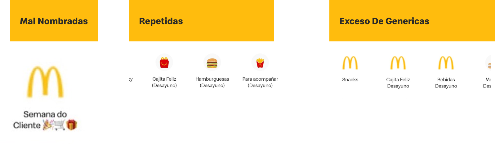 La estandarización de categorías es el proceso de unificar las agrupaciones de productos que se muestran en la app, de manera consistente en todos los países donde opera Arcos Dorados.
