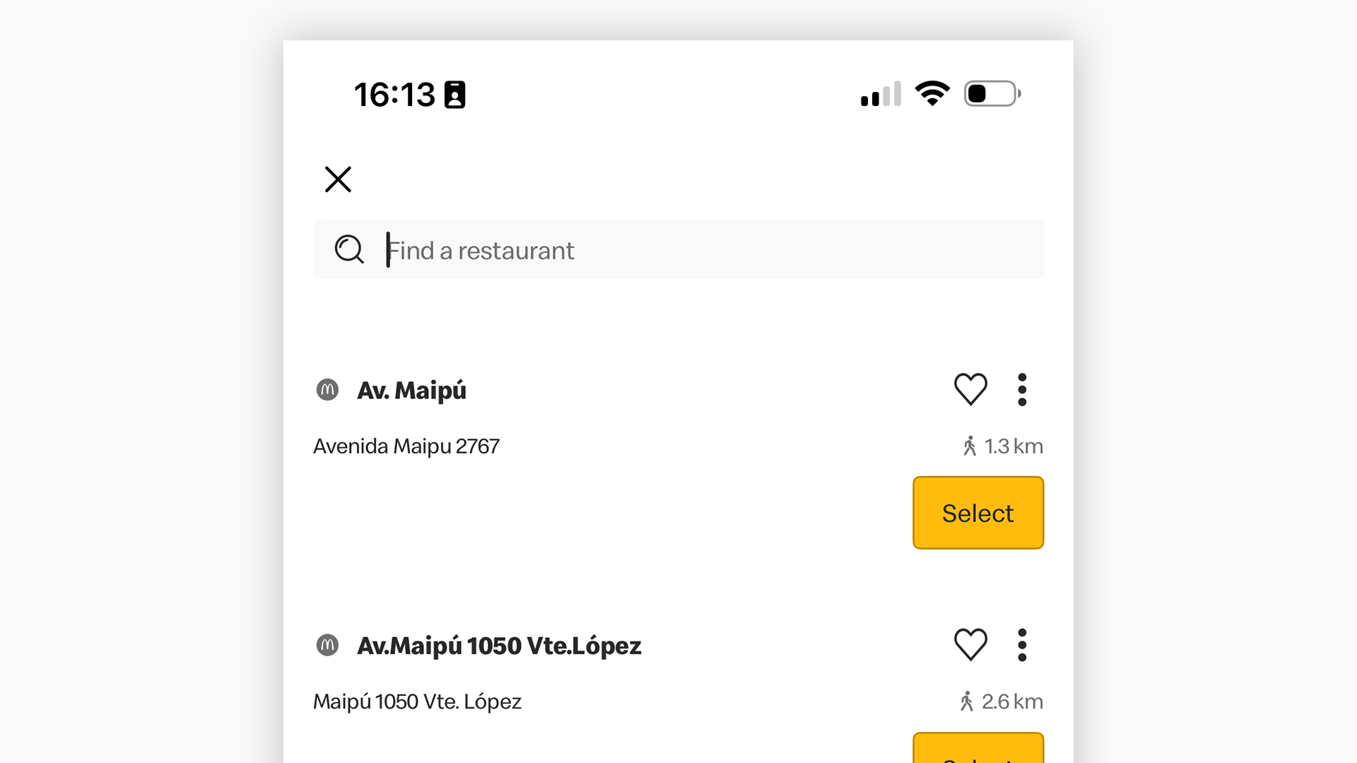 Con el objetivo de disminuir los llamados al Contact Center por error de dirección MOP y reducir el costo del servicio de mapas en aproximadamente un 20%, se desarrollará una nueva pantalla que permitirá al usuario visualizar la lista de restaurantes más cercanos a su ubicación sin necesidad de definir una dirección previamente.