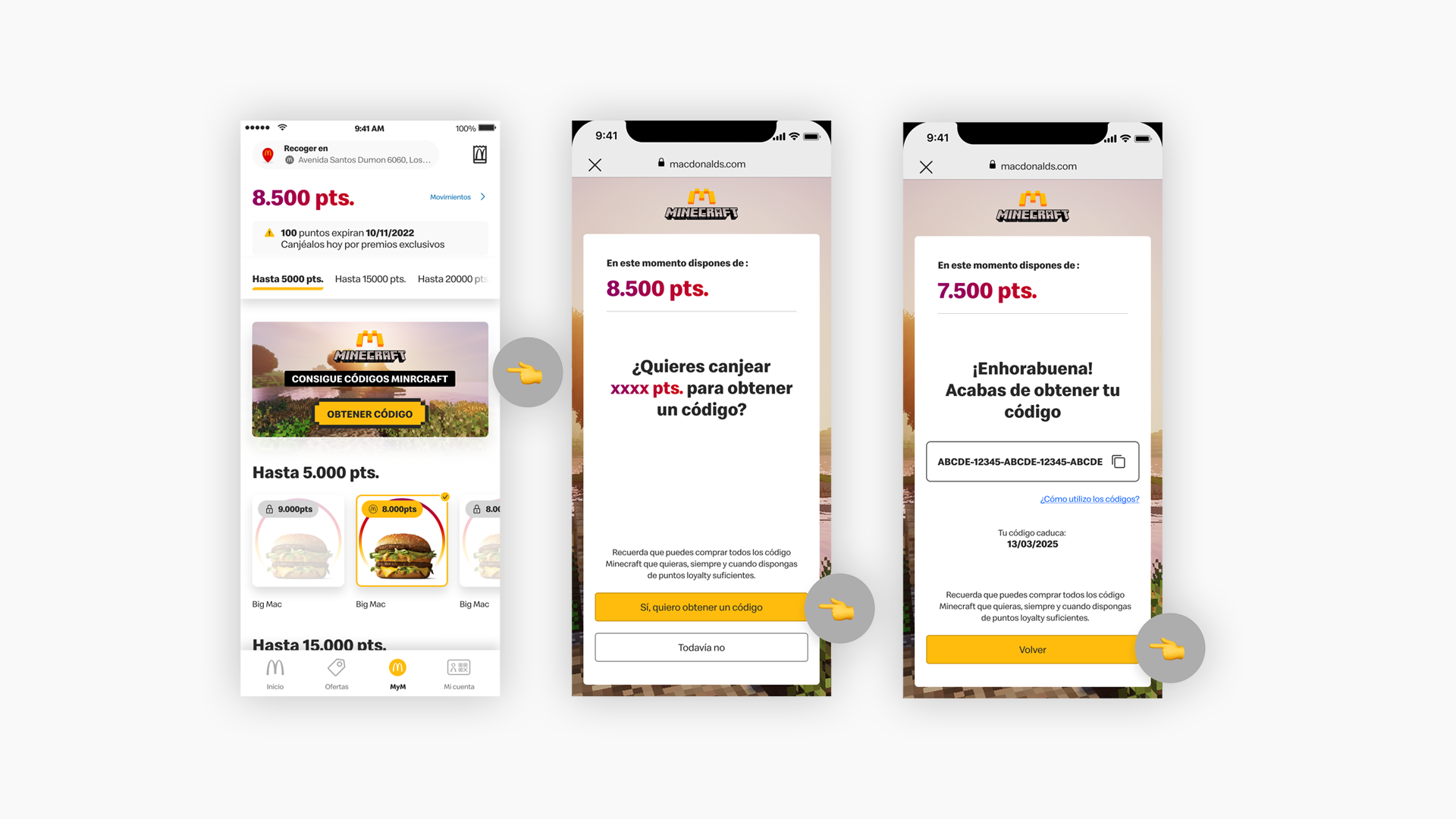 El nuevo hotsite disponible en las Apps permite a los usuarios canjear puntos de Loyalty por códigos (vouchers) de Minecraft. La promoción está activa en seis países de Arcos Dorados, con stock de vouchers y valores diferenciados por mercado. En Brasil, por ejemplo, se requieren 3.000 puntos para canjear por voucher de Minecraft, mientras que en Argentina se necesitan 150 puntos.