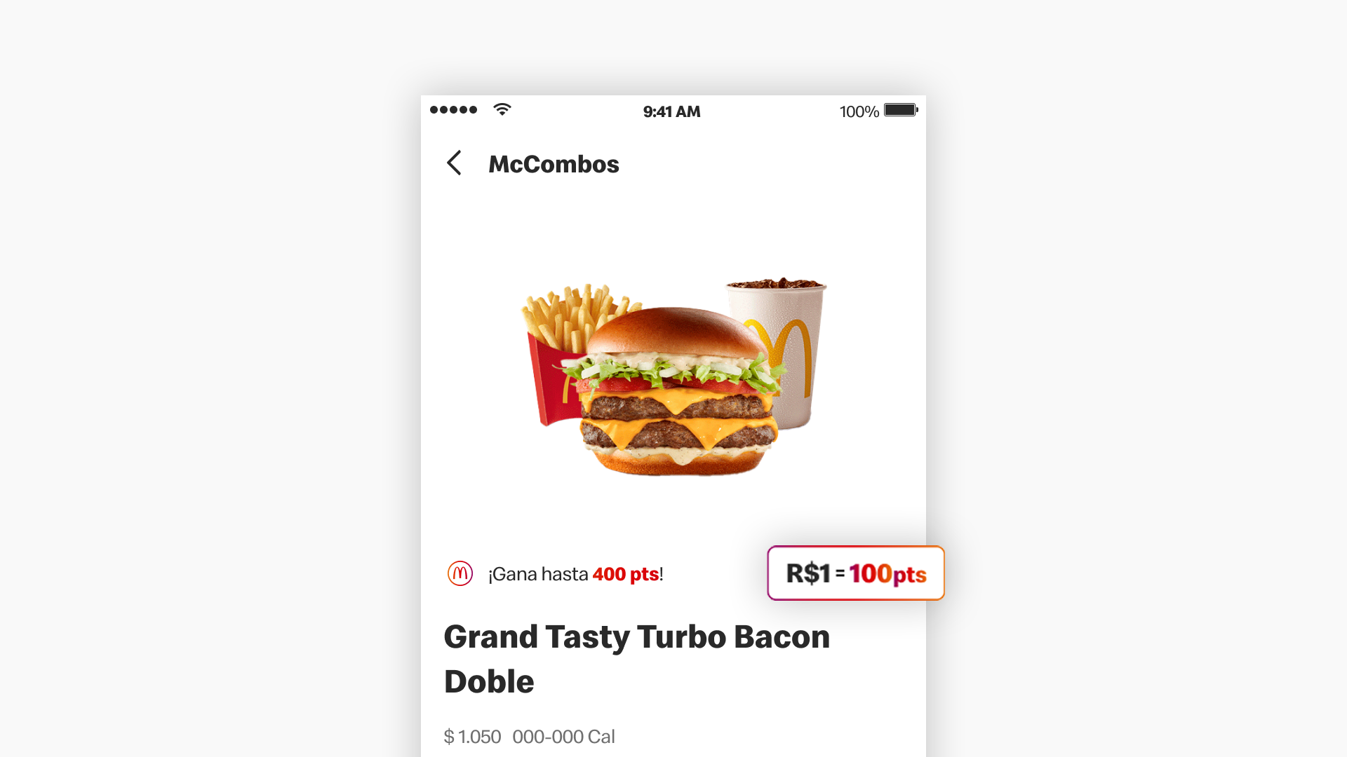 Visualización de la relación de valor con puntos de Loyalty (por ejemplo: R$1 = 100 puntos) en la pantalla de Detalle de Producto. Esta información complementa el valor en puntos que el usuario ya visualiza al considerar una compra, aportando mayor claridad sobre cómo se calculan sus beneficios.