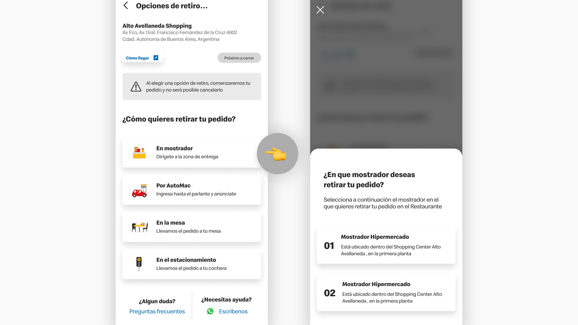 Se incorporó una mejora en la experiencia de retiro de pedidos para locales que cuenten con múltiples mostradores, especialmente en aquellos con mostradores ubicados en distintas zonas o pisos. Con este nuevo desarrollo, el usuario podrá visualizar y seleccionar el mostrador desde el cual desea retirar su pedido, si el local lo permite, asegurando que el pedido se envíe correctamente a la cocina correspondiente.
