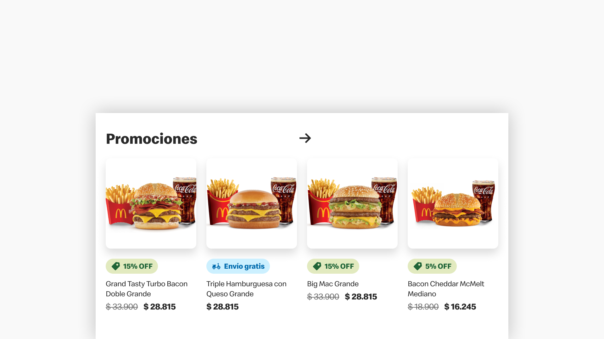 Con este nuevo desarrollo, los usuarios pueden agrandar su combo directamente desde las pantallas de producto, con una propuesta visualmente más atractiva. La funcionalidad impulsa el upselling de manera más efectiva al integrar la promoción en el flujo de compra. Ya está disponible para el 100% de los usuarios de Argentina, Colombia, Chile, Costa Rica, Uruguay, Panamá y México, y próximamente se lanzará en Perú. El resto de los mercados se irán sumando de forma progresiva. Esta funcionalidad demostró traer 5pp más de combos grandes en Costa Rica y 10pp en Colombia.