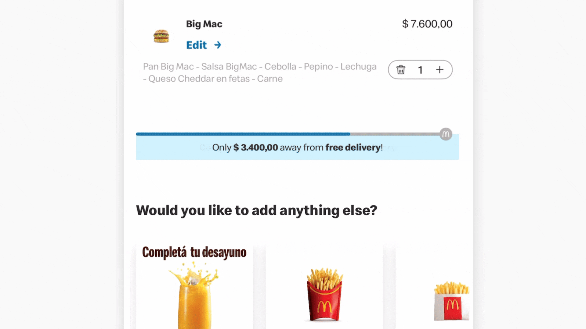 Se implementó una nueva barra de progreso con enfoque gamificado que permitirá al usuario visualizar, en tiempo real y durante todo su recorrido en la App, el avance de su pedido respecto a dos hitos clave: evitar el small order fee y alcanzar el monto mínimo para obtener envío gratis. Esta barra reemplaza la lógica actual, que solo mostraba un mensaje en el carrito, y estará presente desde el inicio de la experiencia de compra, facilitando que el usuario tome decisiones más informadas.