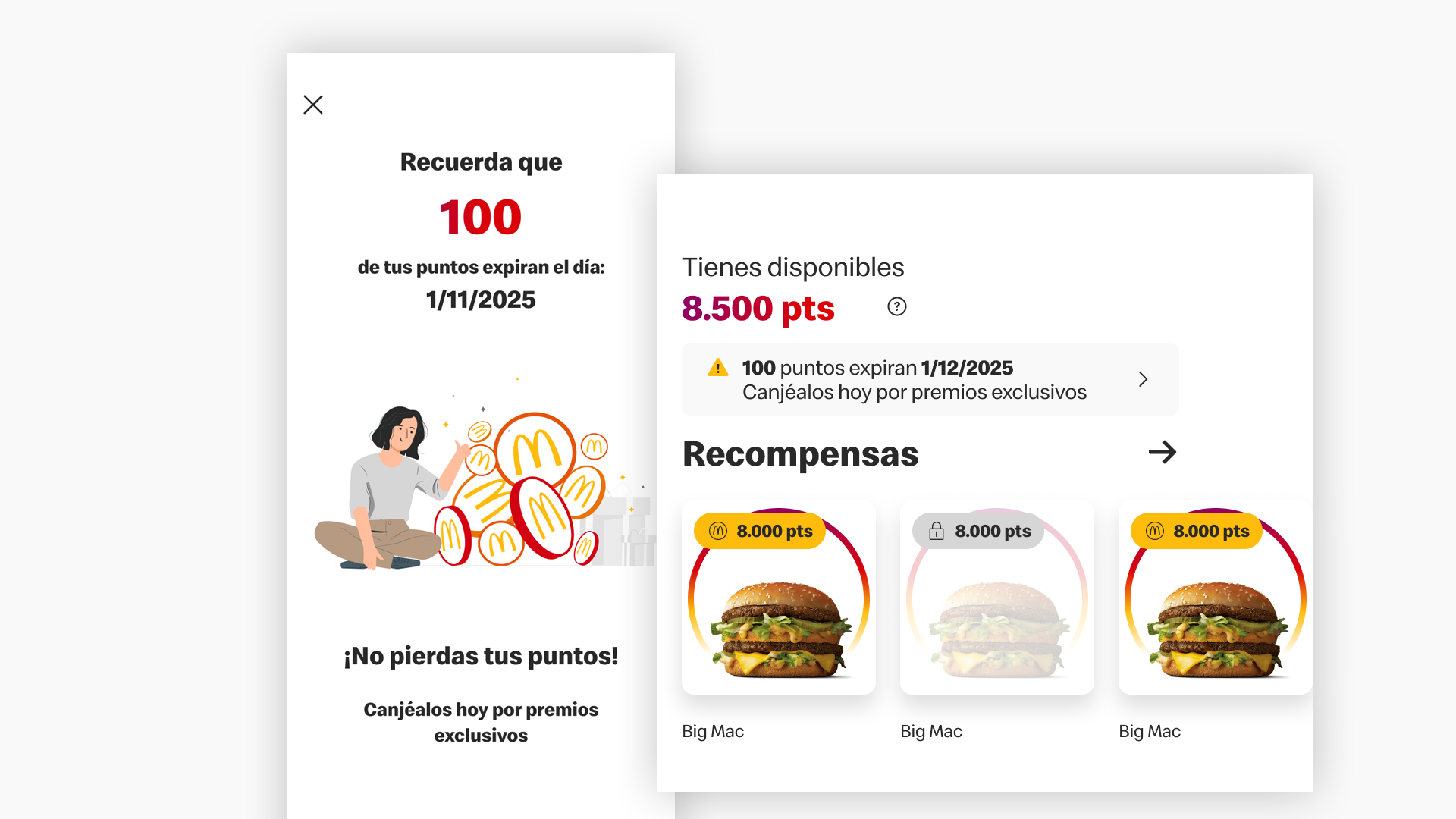 Objetivo: Incentivar el uso de puntos antes de su vencimiento, ofreciendo esta información de manera contextual y accesible dentro de las Apps.