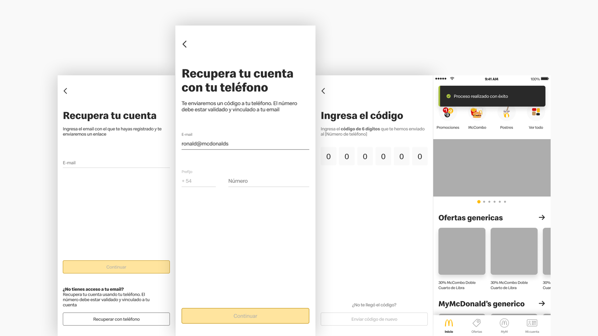 Este desarrollo permite que los usuarios que no tengan acceso a su correo electrónico puedan recuperar su cuenta usando un código (token) enviado al número de teléfono registrado en su cuenta. Al ingresar ese código, podrán volver a acceder y actualizar su dirección de correo directamente desde la aplicación, sin necesidad de contactar al soporte.